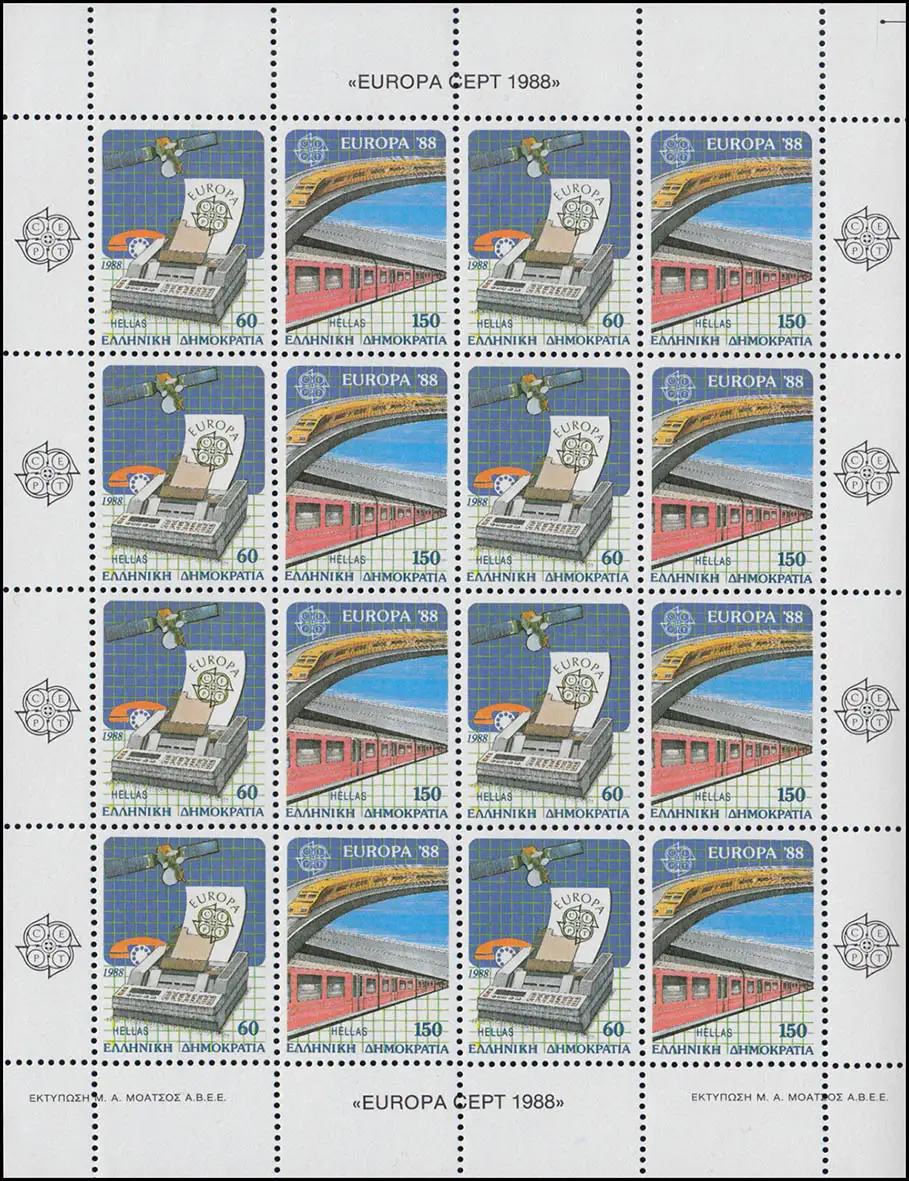 Moyens de transport et de communication: satellite, télécopieur, téléphone / chemin de fer, route, métro Numéro de catalogue: 1685-1686 Examen: original Numéro d'article: 764000168501100
