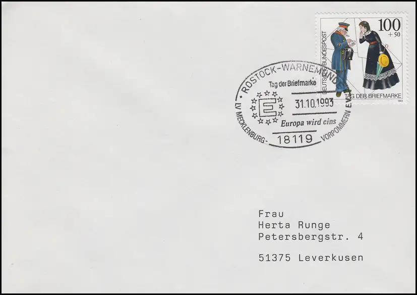 1692 Journée du timbre & Postbote, EF Bf SSt Rostock Avertissements EUROPE 31.10.93