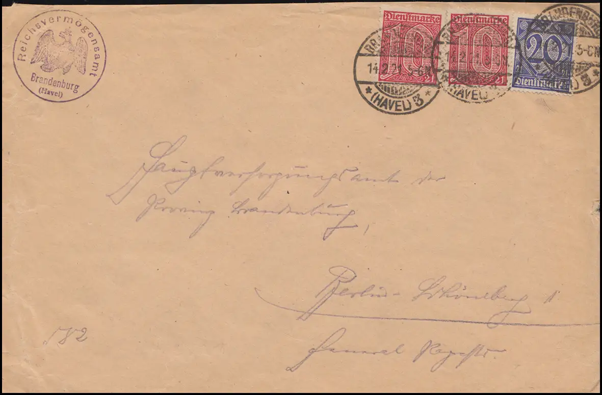 17+19 MiF sur lettre Reichsbedenamt BRANDENBURG (HAVEL) 14.2.21