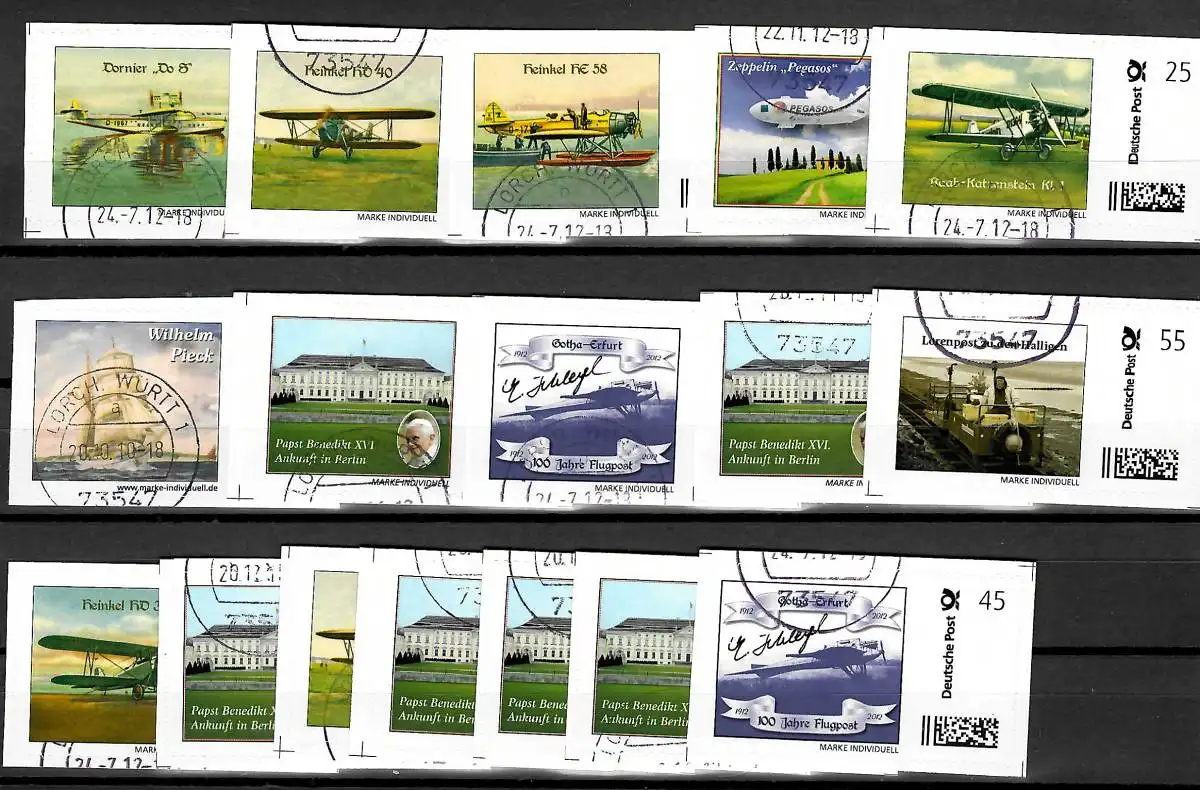 17 Individuel Timbres Allemagne: Avions, Bateaux, Pape Benoît XVI