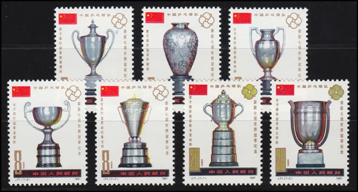 1703-1709 Chine - Coupes de tennis de table en Coupe du Monde, frais de port ** / MNH