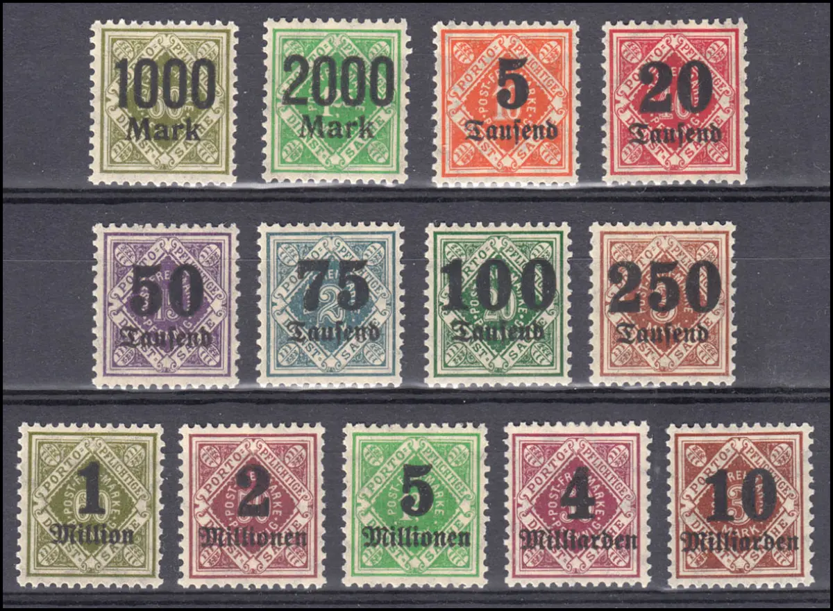 171-183 Marques de service Haute inflation avec impression, 13 valeurs complètes **