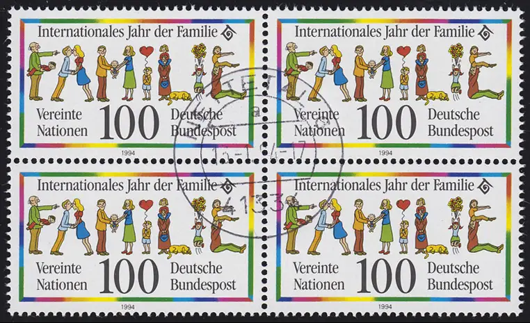 1711 Année de la famille: Quadruple, timbre complet centré NETTETAL 13.1.94