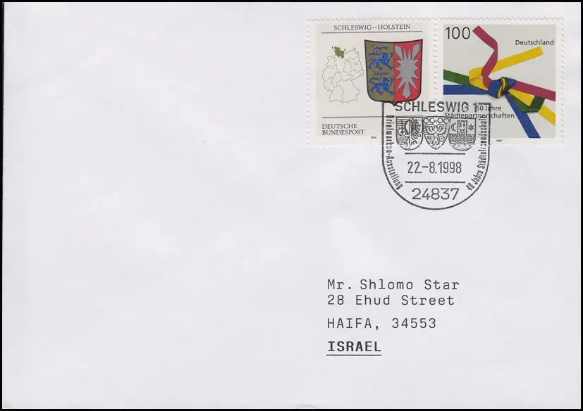 1715 Schleswig-Holstein, MiF avec 1917 Bf Schleswig amitié ville 22.8.1998