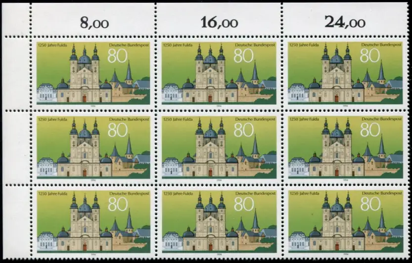 1722 Fulda: bloc Eckrand-9er avec PLF sur le champ 2 et PLL 1772X sur la case 11, **