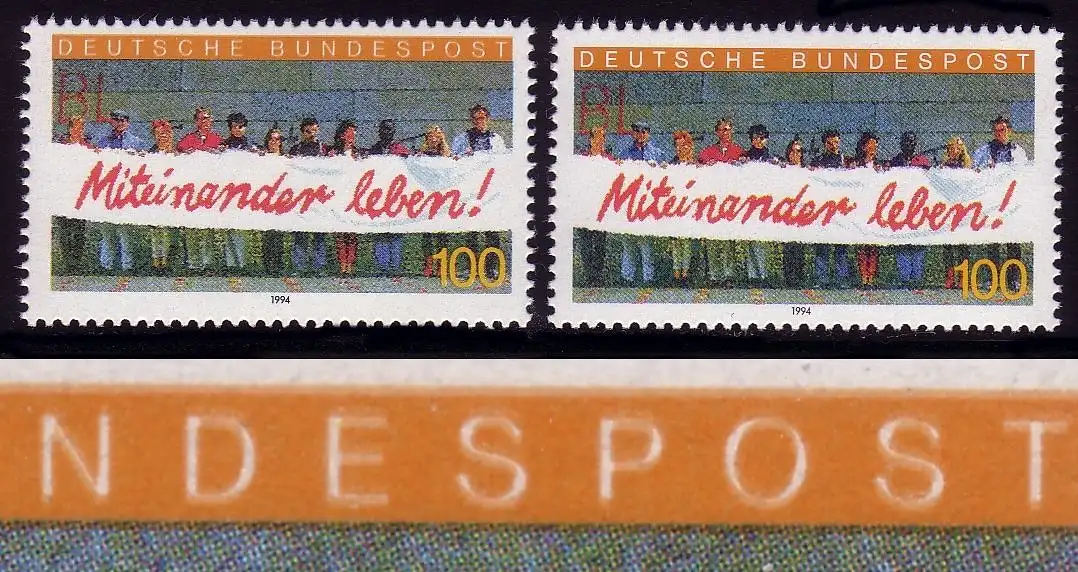 1725DD Vivre ensemble: double-impression couleur orange, avec pièce de comparaison, **