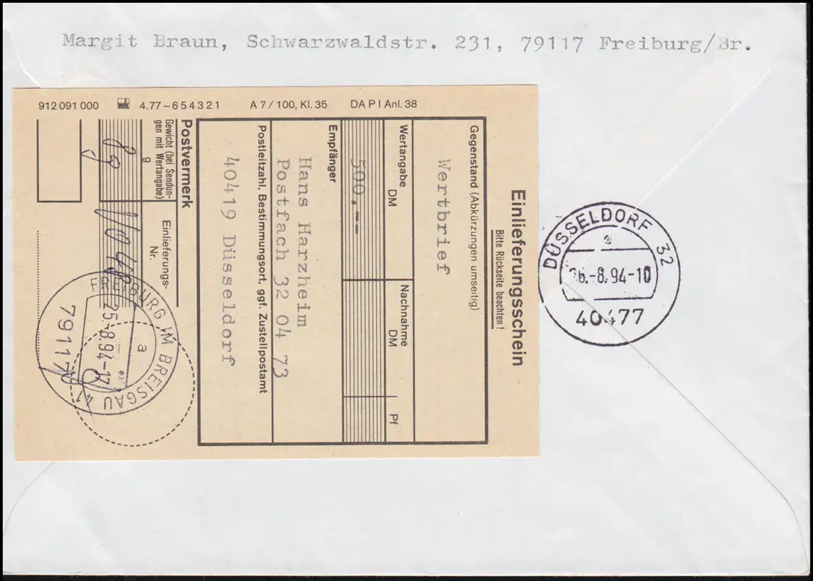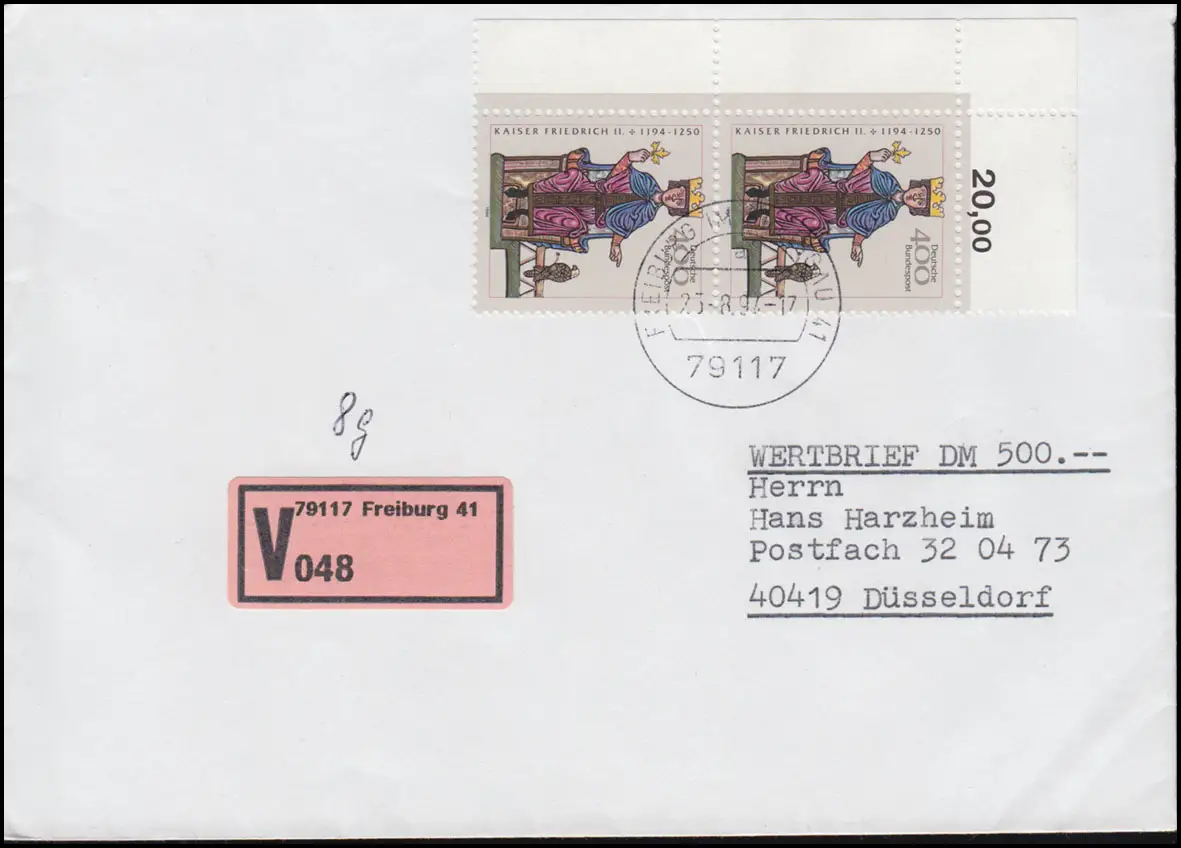 1738 L'empereur Friedrich II comme couple de bord d'angle MeF Werte-Lettre FREIBURG 25.8.1997