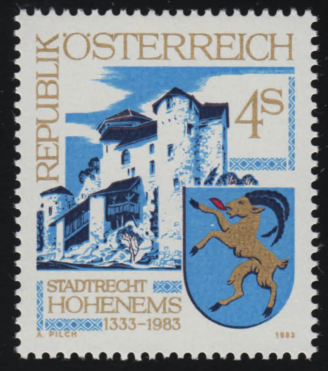 1741 550 ans de droit municipal Hohenems, château de Gloopper, armoiries de la ville, 4 S post-freeich **