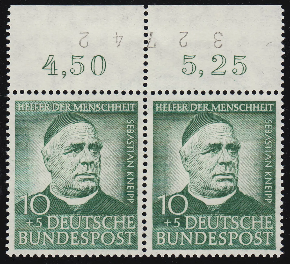 Postfrisches und ungefaltetes Randpaar mit Randziffern und mit dem seltenen Wasserzeichen 4Y