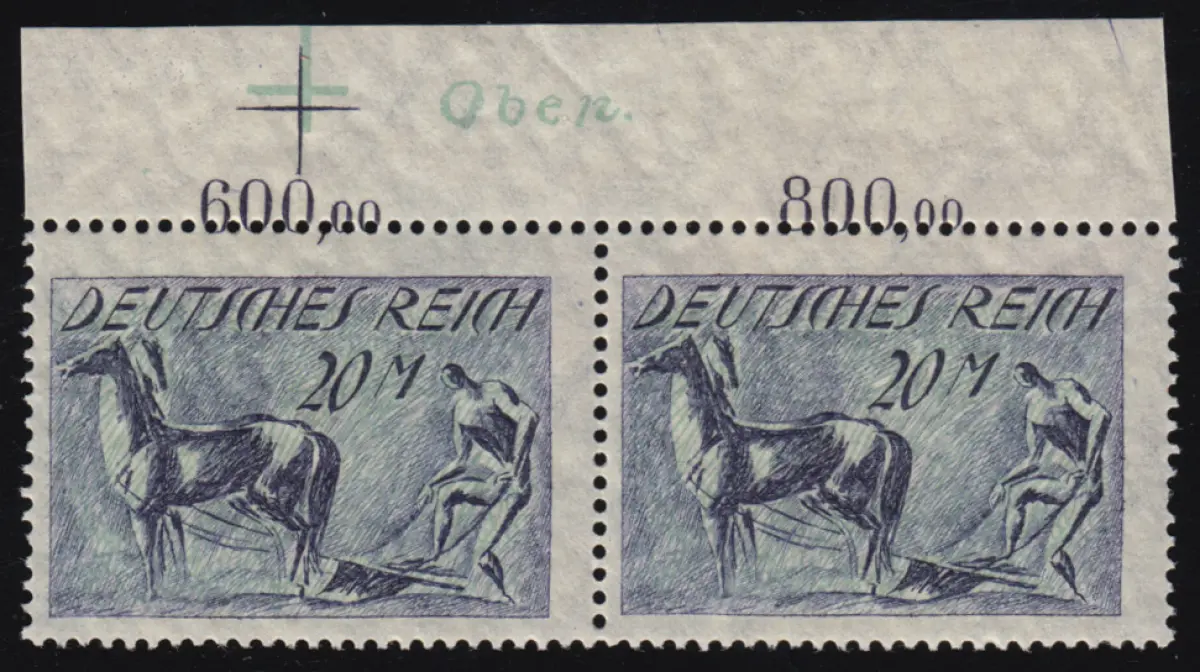 176 Marque libre 20 m. en couple de bord supérieur avec impression verte "Oben," **