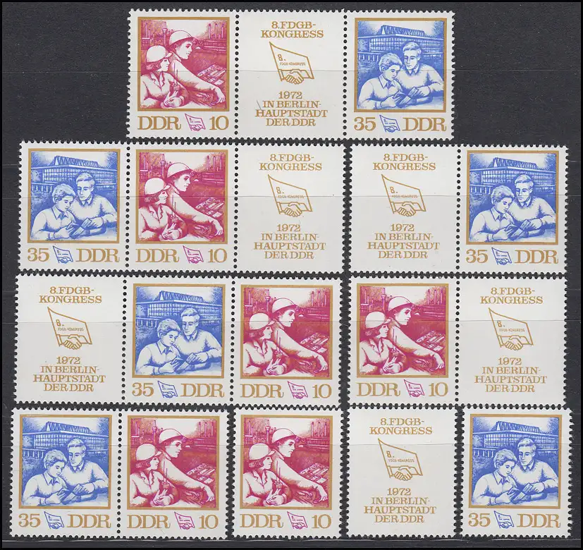 1761-1762 Congrès FDGB, 6 tirages groupés + 2 timbres individuels, set frais de port **