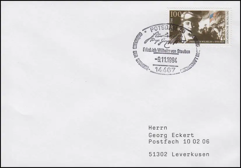 1766 Friedrich Wilhelm von Steuben EF FDC ESSt Potsdam Steoben-Gesellschaft 1994