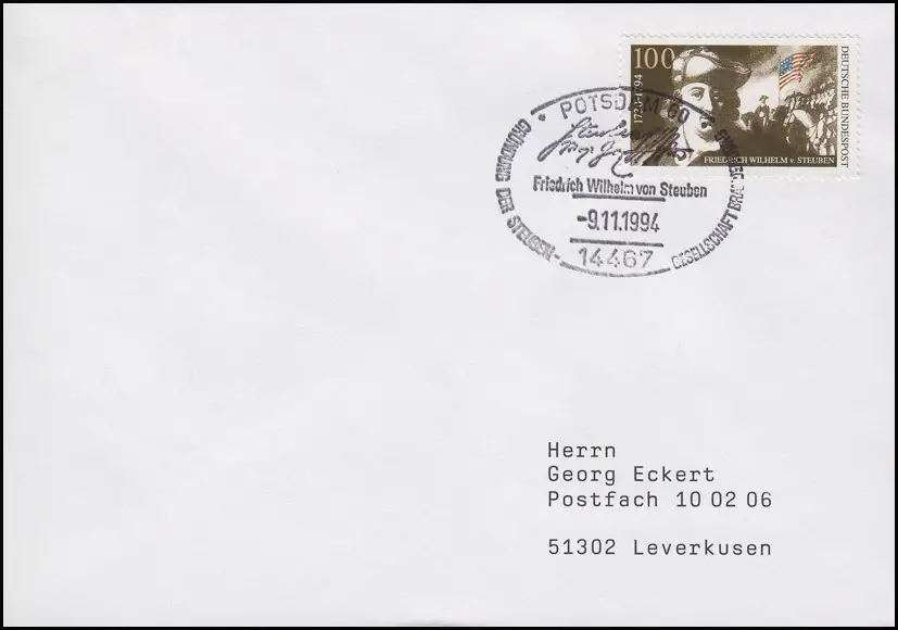 1766 Wilhelm von Steuben, FDC ESSt Potsdam Fondation Steoben-Gesellschaft 9.11.94