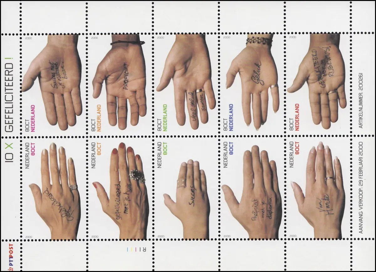 1776-1785 Marques de voeux: mains avec félicitations 2000 - arc en petits, frais de port **