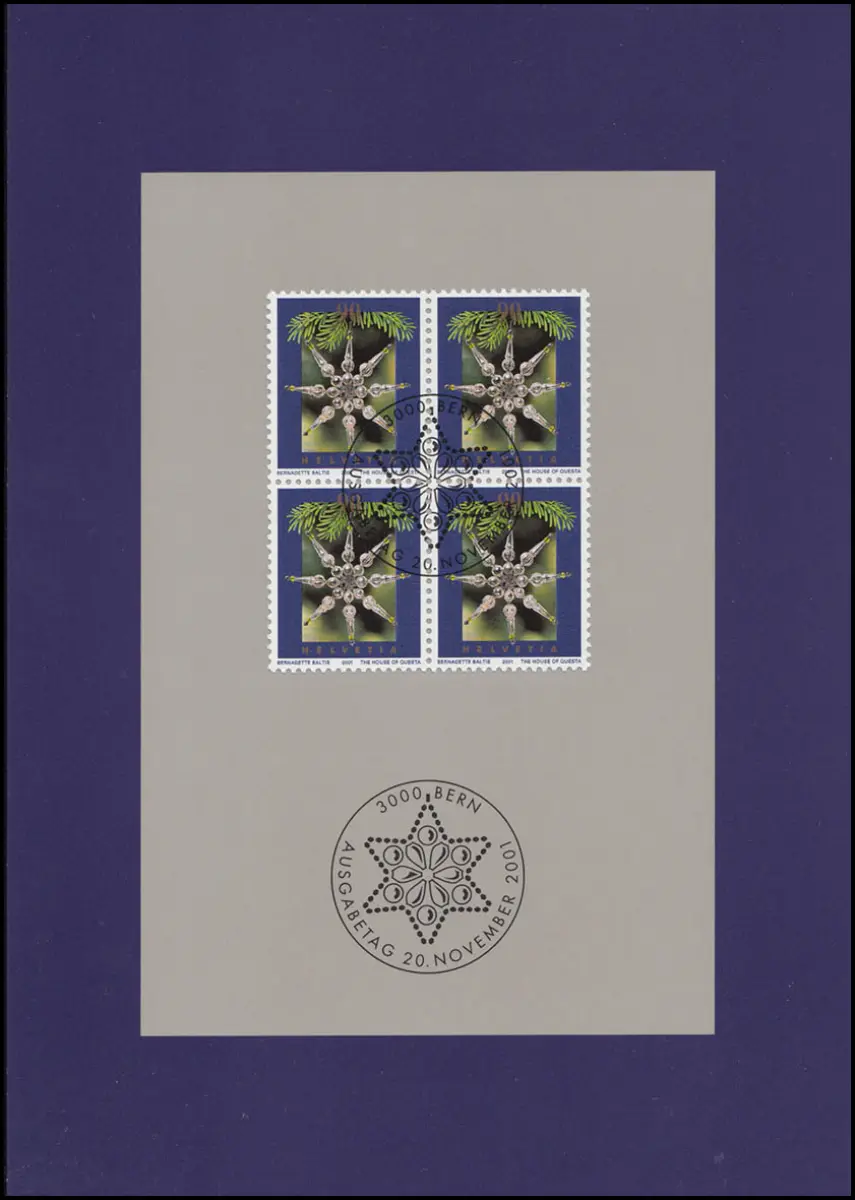 1776 Noël 2001 dans le Quadruple bloc, carte de vœux PTT pour la fin de l'année