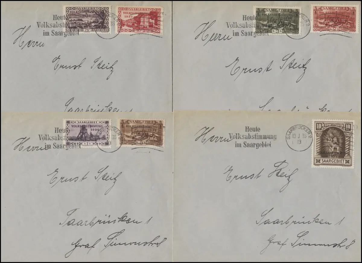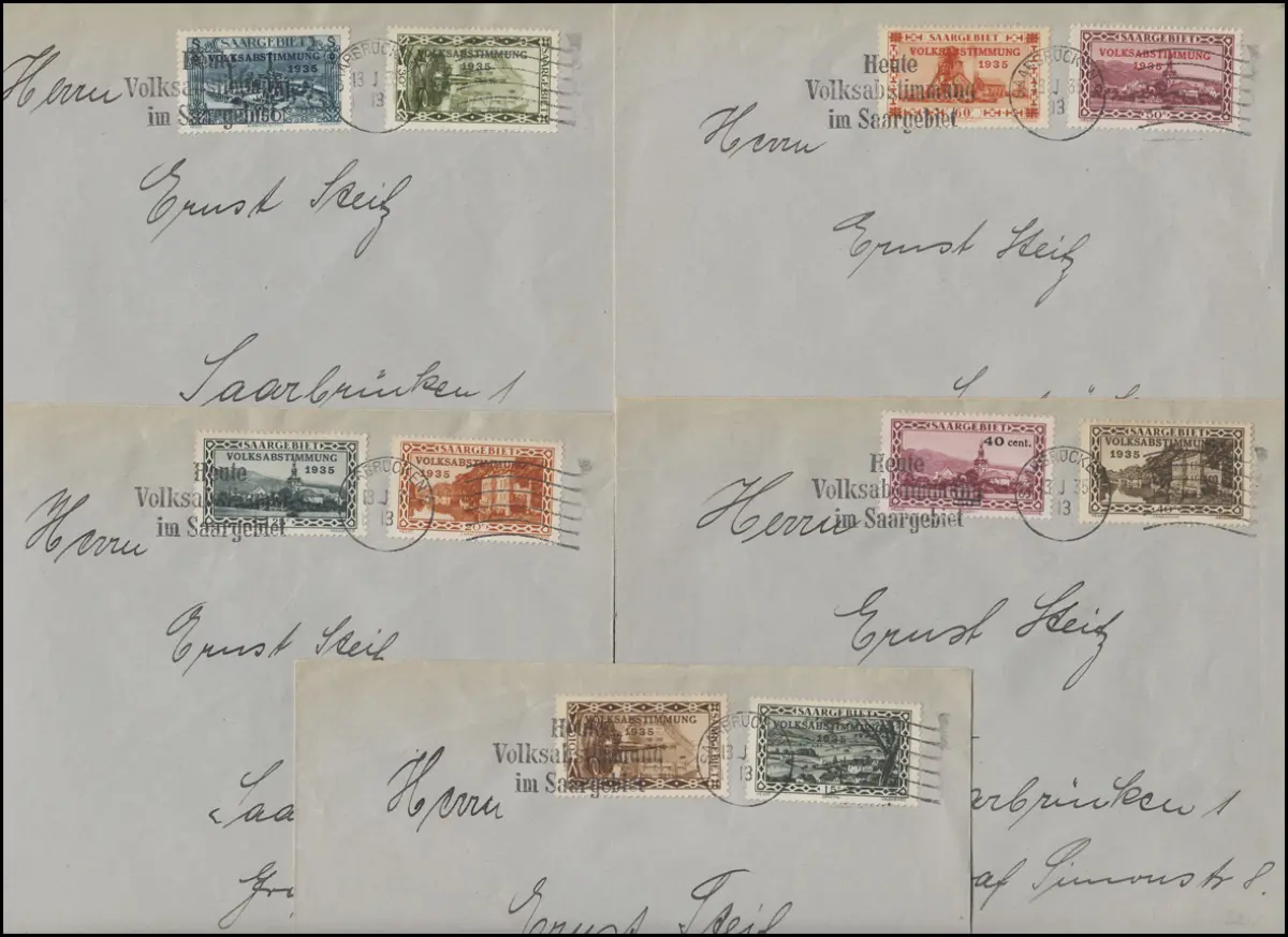 178-194 francs kpl. sur 9 lettres de collection du jour du référendum 13.1.35