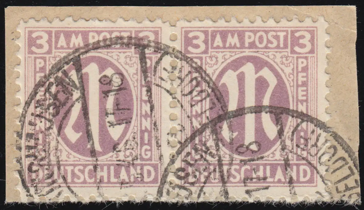 Couple horizontal avec défaut de plaque MICHEL XVI sur la marque réelle: ligne cassée sous M P de AM POST, Lettre de 1946 N° de catalogue: 17XVI Vérification: original Référence produit: 00000000002541>p>Remarque: Cet article n'est disponible qu'une seule fois. Vous recevrez exactement l'article représenté.