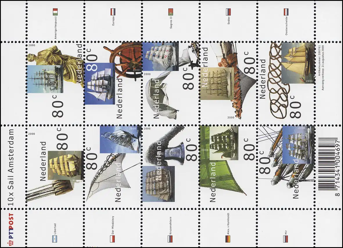 1807-1816 Parade maritime Sail Amsterdam 2000 - Petit arc, frais de port **