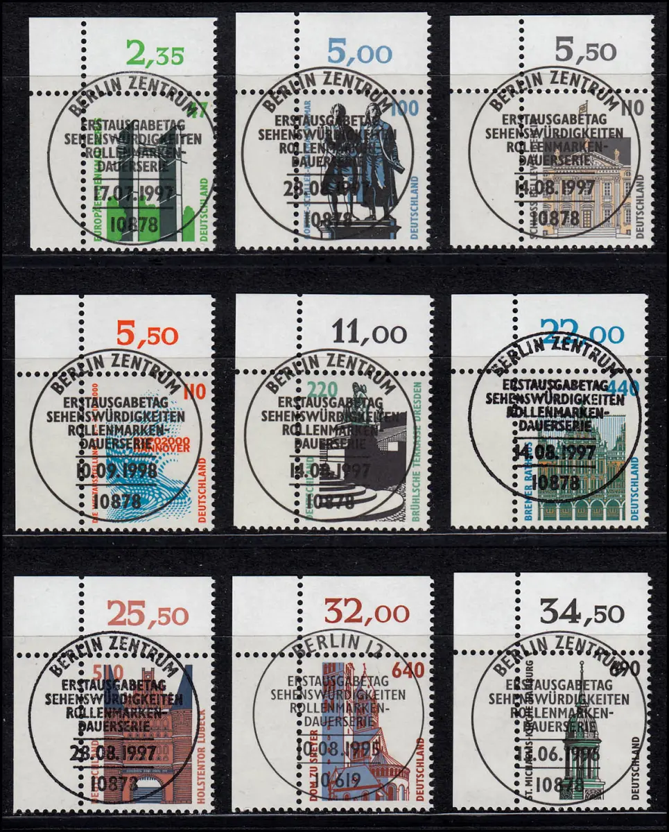1811 ff SWK 9 DM-Werte aus 10er-Bogen kpl. Ecken oben links, Satz ESST Berlin
