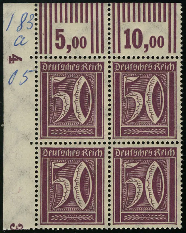 183b W OR Marque libre chiffre 50 Pf Eckrand-Quater 3'7'3 / 2'9'2 **