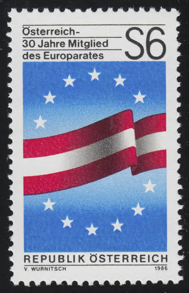 1842 Autriche - 30 ans Membre du Conseil de l'Europe Drapeau + emblème, 6 S post-fraîchissement **