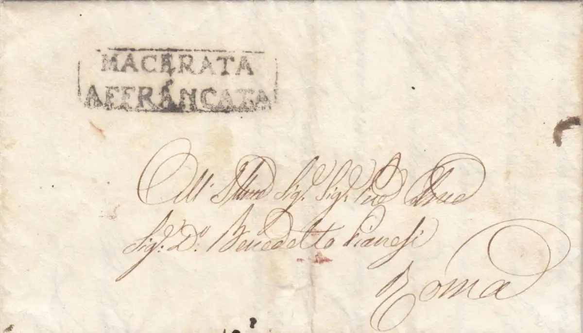 1847: Macerata Affrancata to Roma, a lot text, BPP Signed