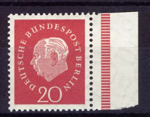 184v Heuss 20 Pf - pression de la plaque/décollage de caoutchouc sur la droite **