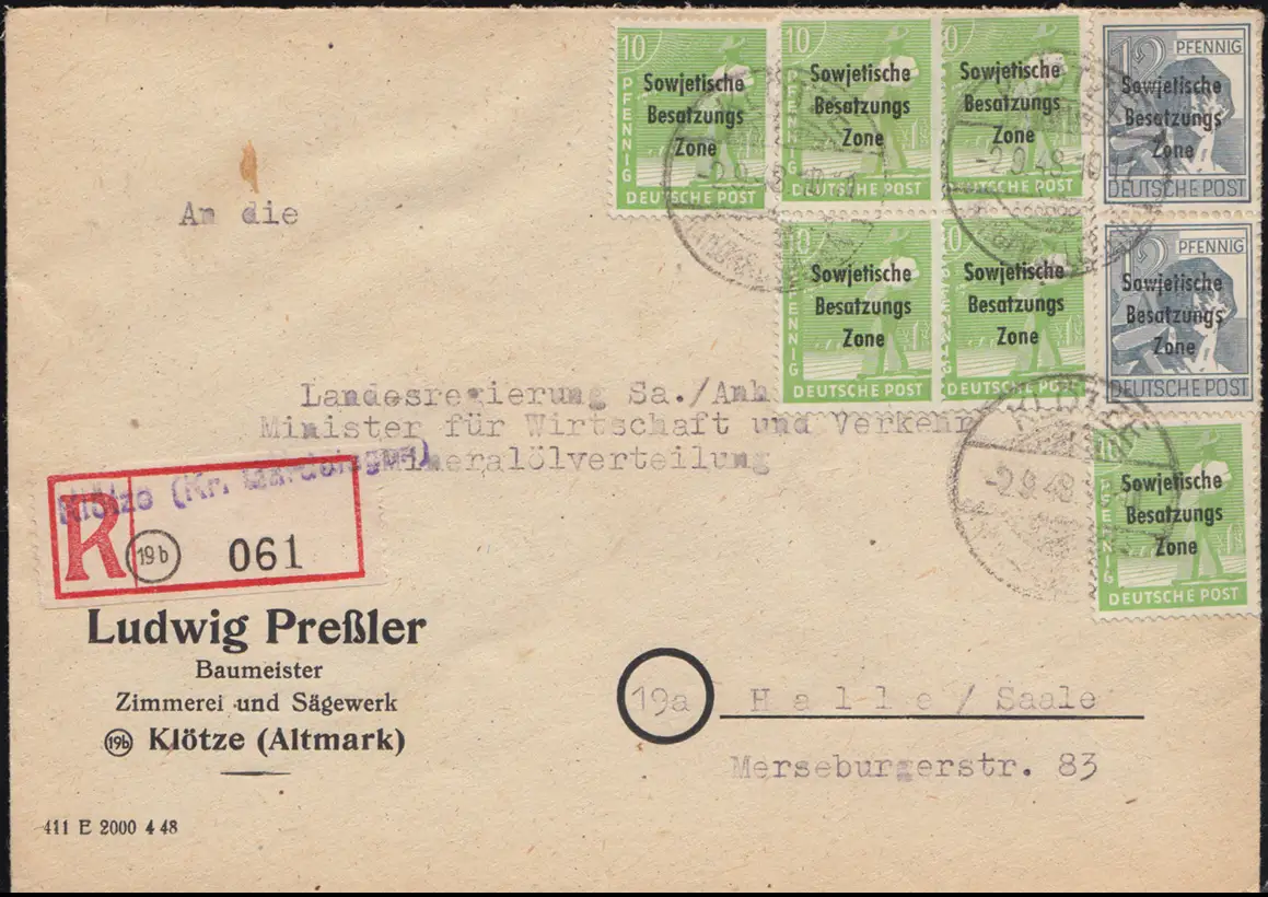 185+186 Imprimes SBZ MiF R Lettre de Not-R-Zetten KLÖTZE (Kr. GARDELEGEN) 2.9.1948