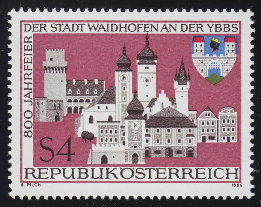 1852 800 ans Ville de Waidhofen, A.d. Ybbs, vue & armoiries, 4 S frais de port **