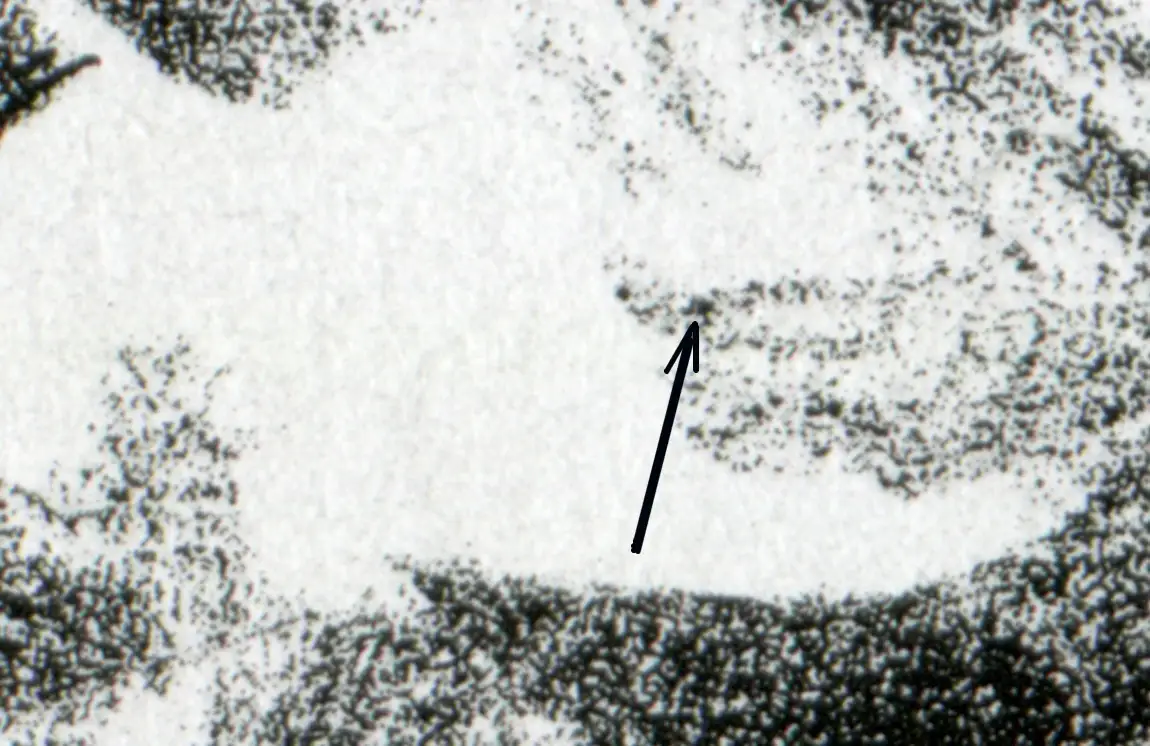 Petit arc avec défauts de plaque dans la case 2: tache noire à droite de U au-dessus de l'oreille dans les cheveux Numéro de catalogue: 1855 Examen: original Numéro d'article: 501001855500101