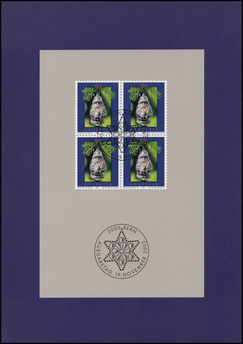 1858 Noël 2003 dans le Quadruple, carte de vœux PTT pour la fin de l'année