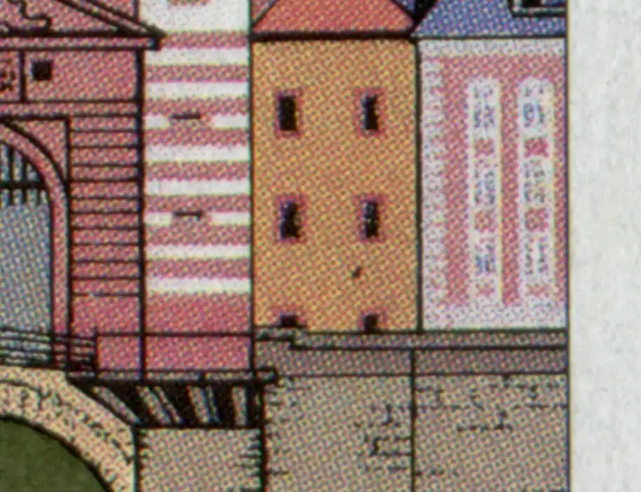 Petit arc avec erreur de plaque MICHEL I dans la case 1 - tache noire dans le deuxième bâtiment de droite Numéro de catalogue: 1868I Examen: original Numéro d'article: 50100186800101