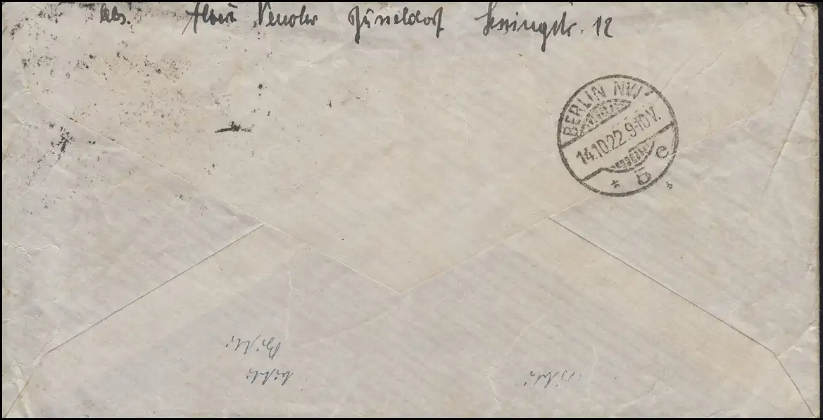 avec cachet d'arrivée BERLIN NW 5 e - 14.10.22 Vérification: original Référence produit: 00000000029315