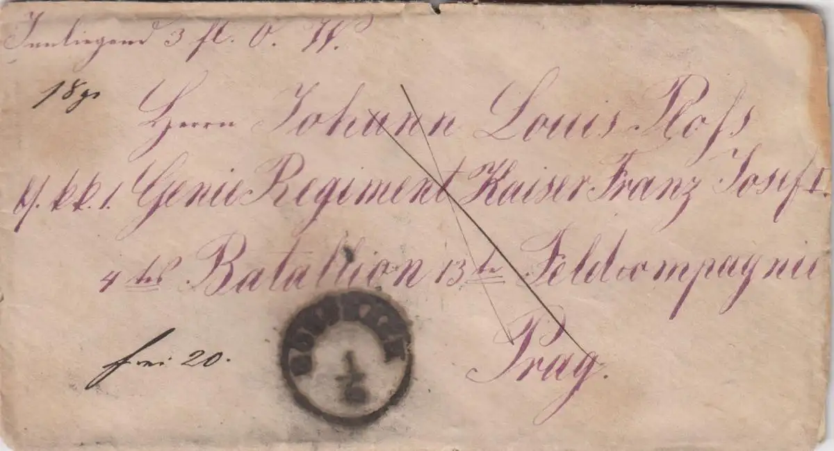1876: Rossbach à Prague, sceau, contenu de la lettre, 2 côté ouvert