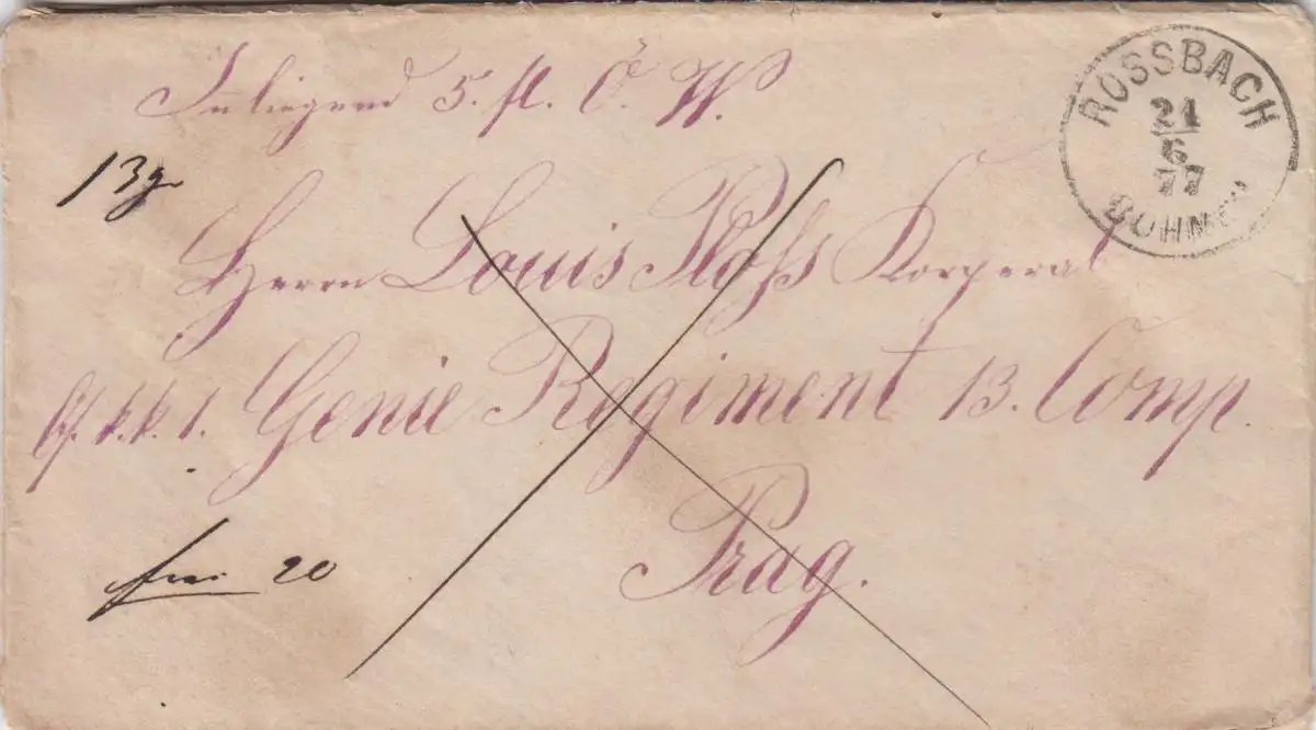 1877 Rossbach / Bohême à Prague avec lettre dépôt