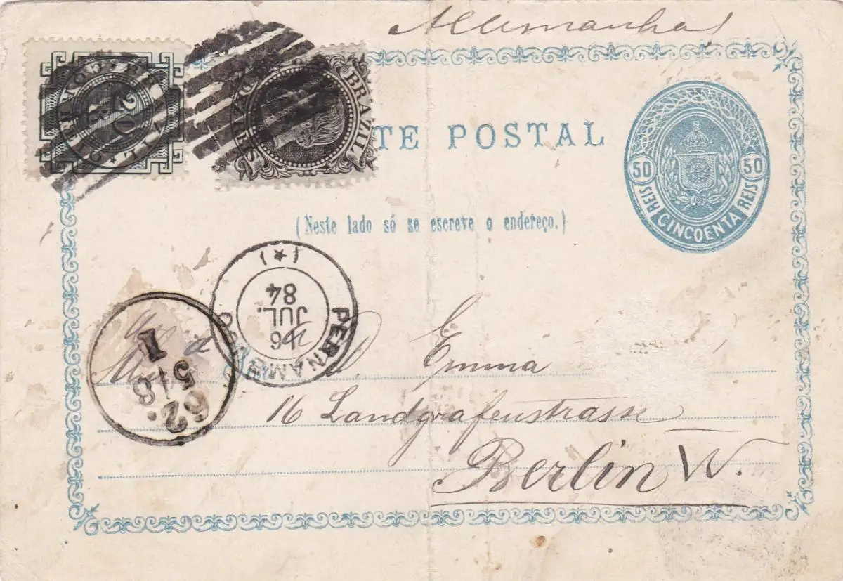 1884: Carte Postal from Brazil to Berlin