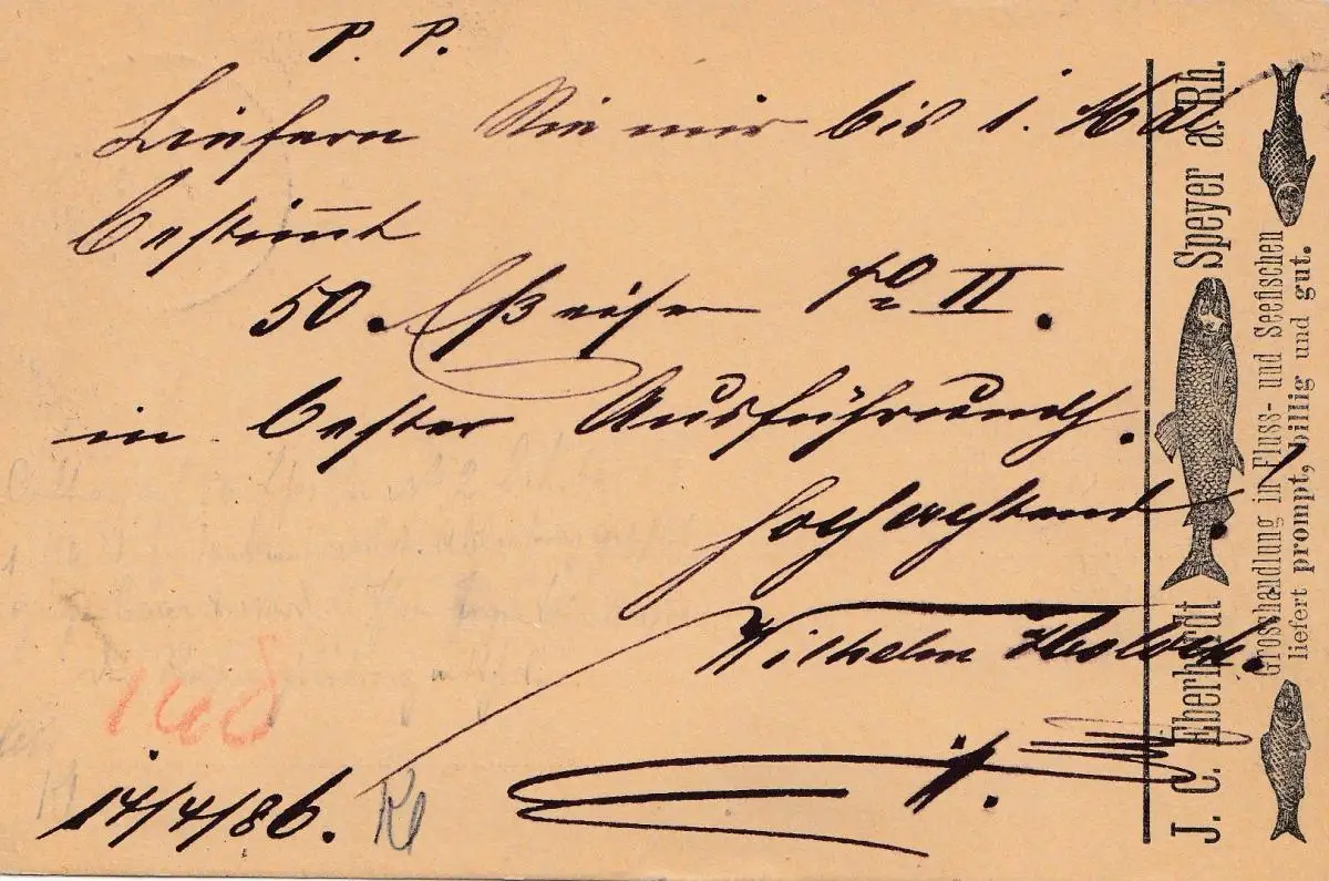 1886: Württemberg: Attention à Stuttgart, publicité arrière poisson de rivière et de mer