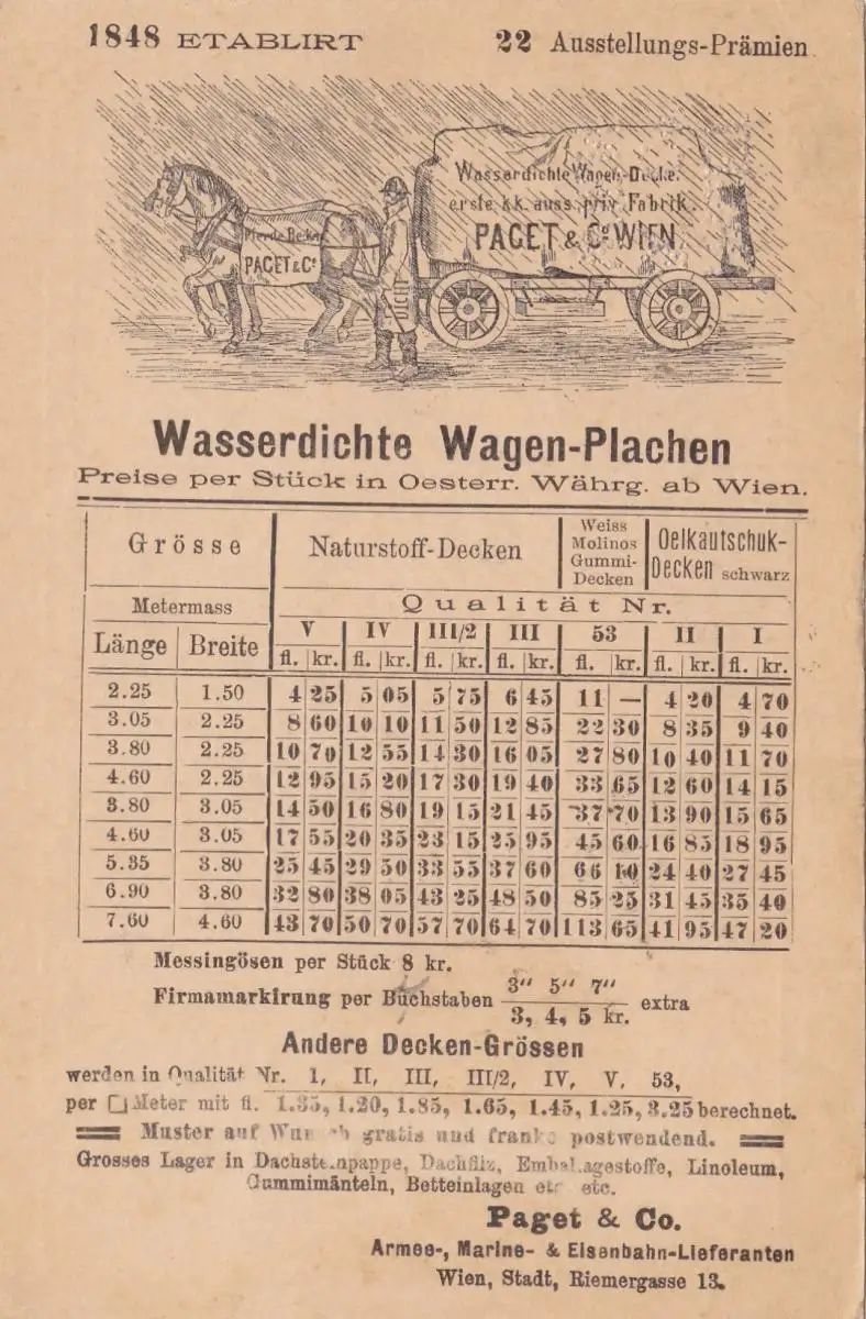 1890: Vienne après Offenbach: Publicité Chariots étanches (planwagen)