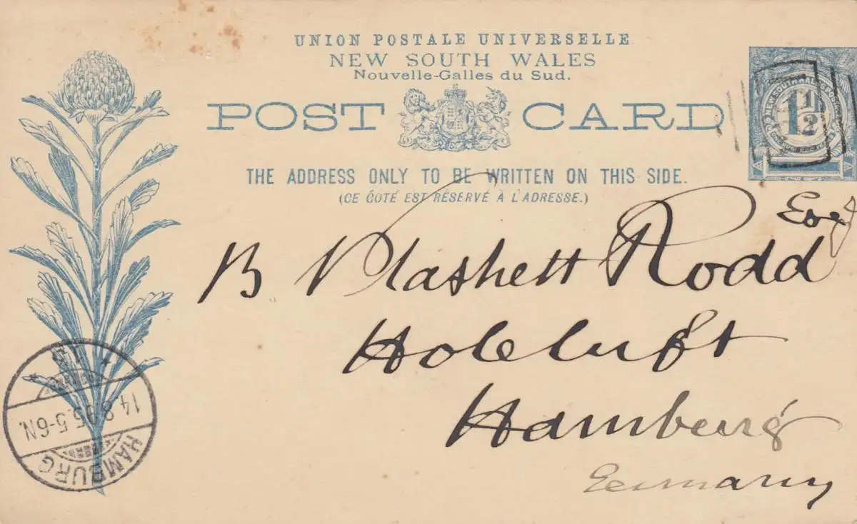 1895: post card NSW to Hambourg