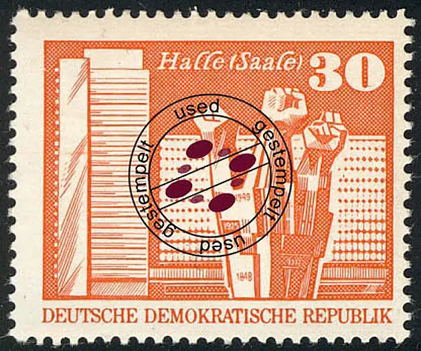 1899 Construction en RDA Grand format 30 Pf O Tamponné