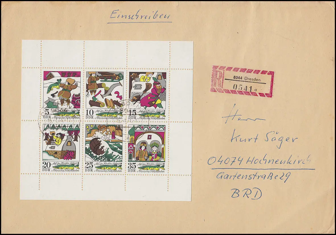 1901-1906 Petite arc de conte de fées 1973 sur lettre R DRESDEN 15.1.74 à Hochneukirch