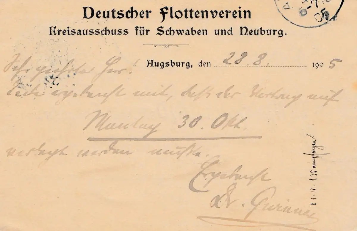 1905: Augsbourg, bureau d'Inzell Flotteverein