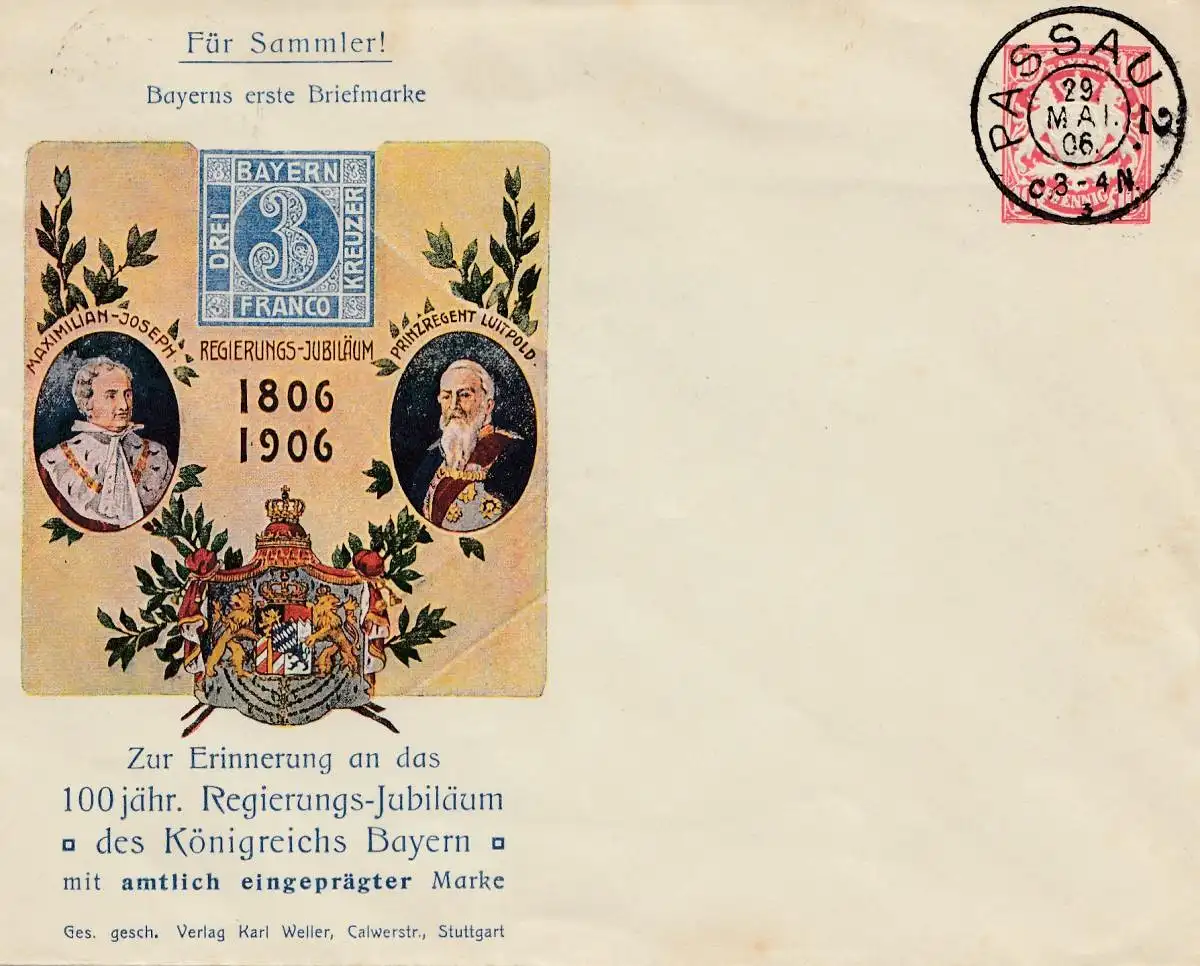 1906 Jubilé complet 100 Gouvernement Bavière: publicité de bières arrière avec baril