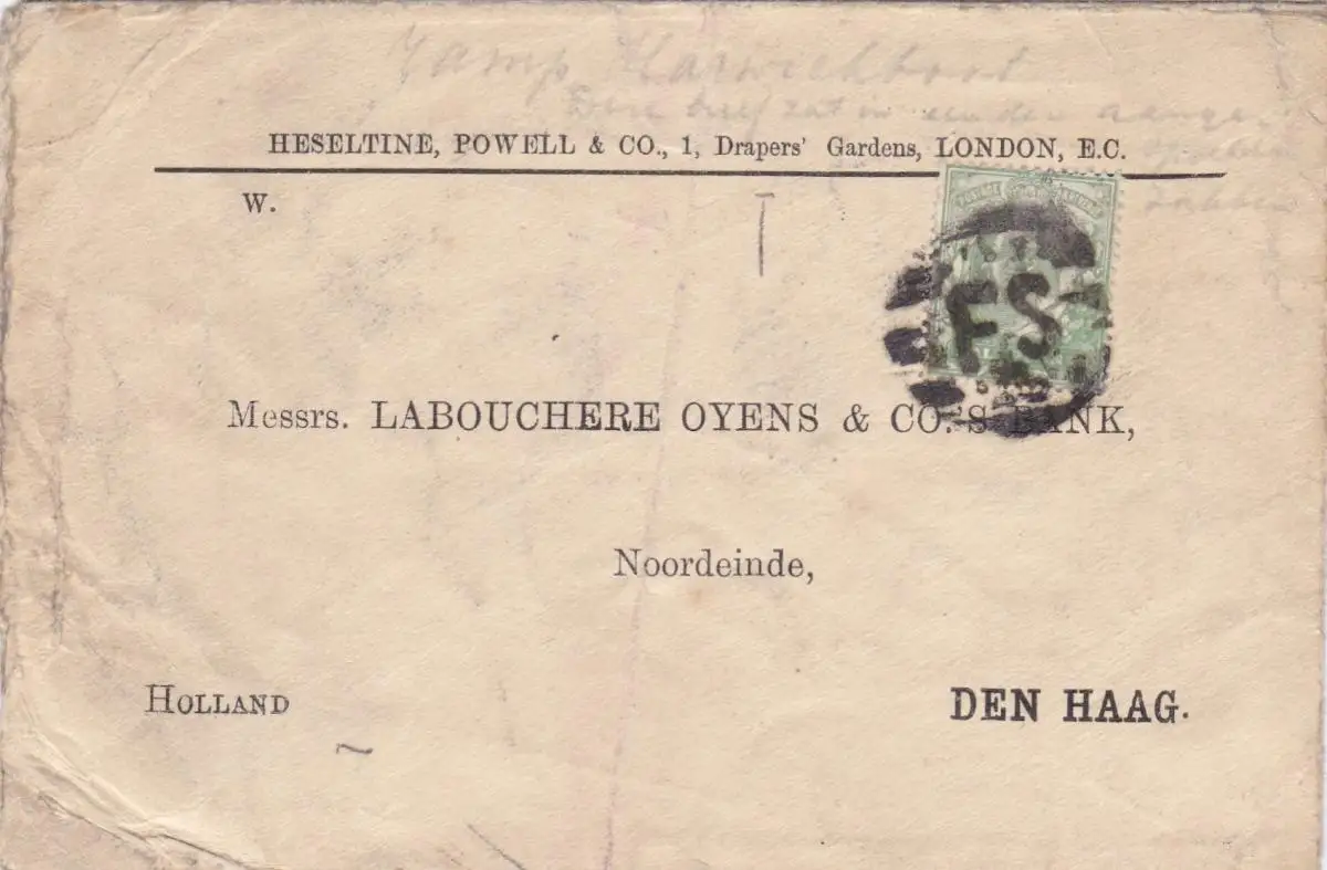 1907: letter from London to Den Haag