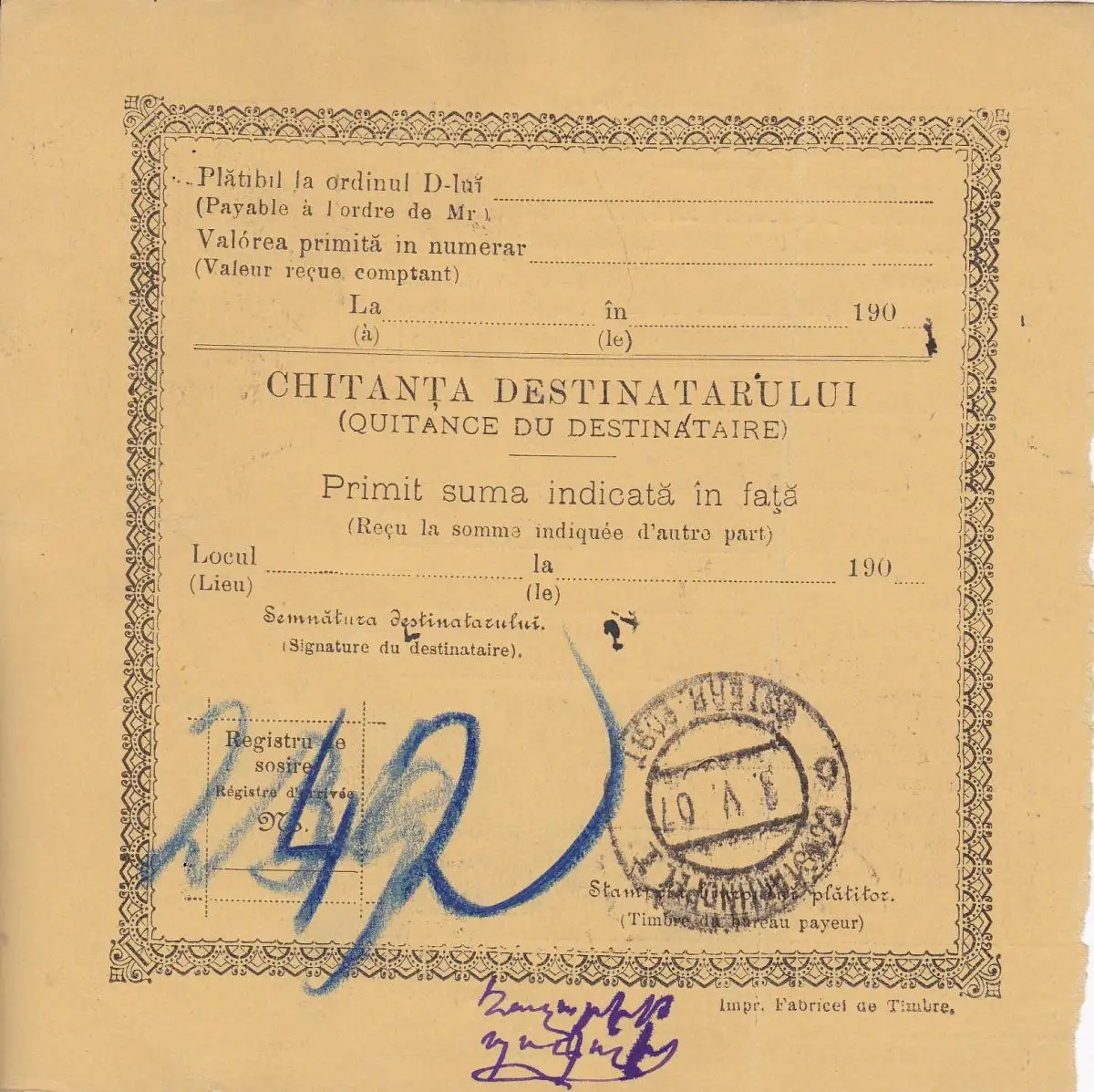 1907: parcel card Romaina/Bucaresti to Constantinopel