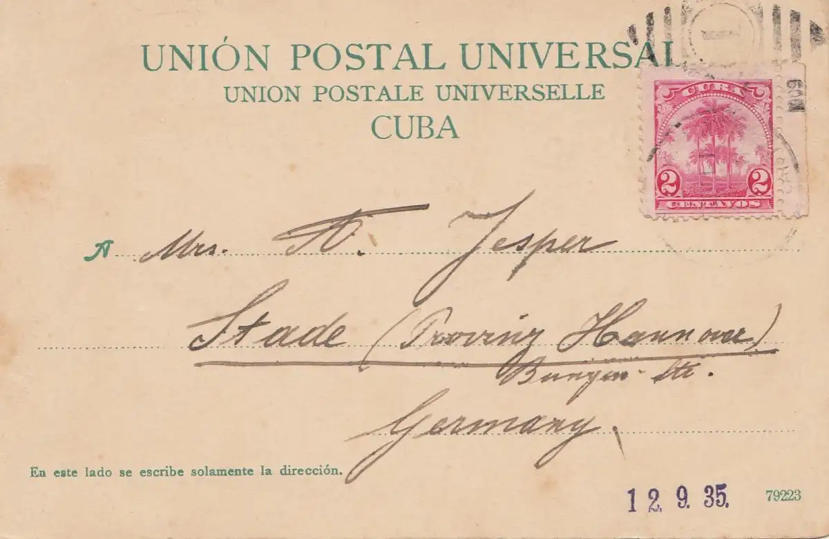 1909: post card Calle Padre Picolo to Stade/Germany