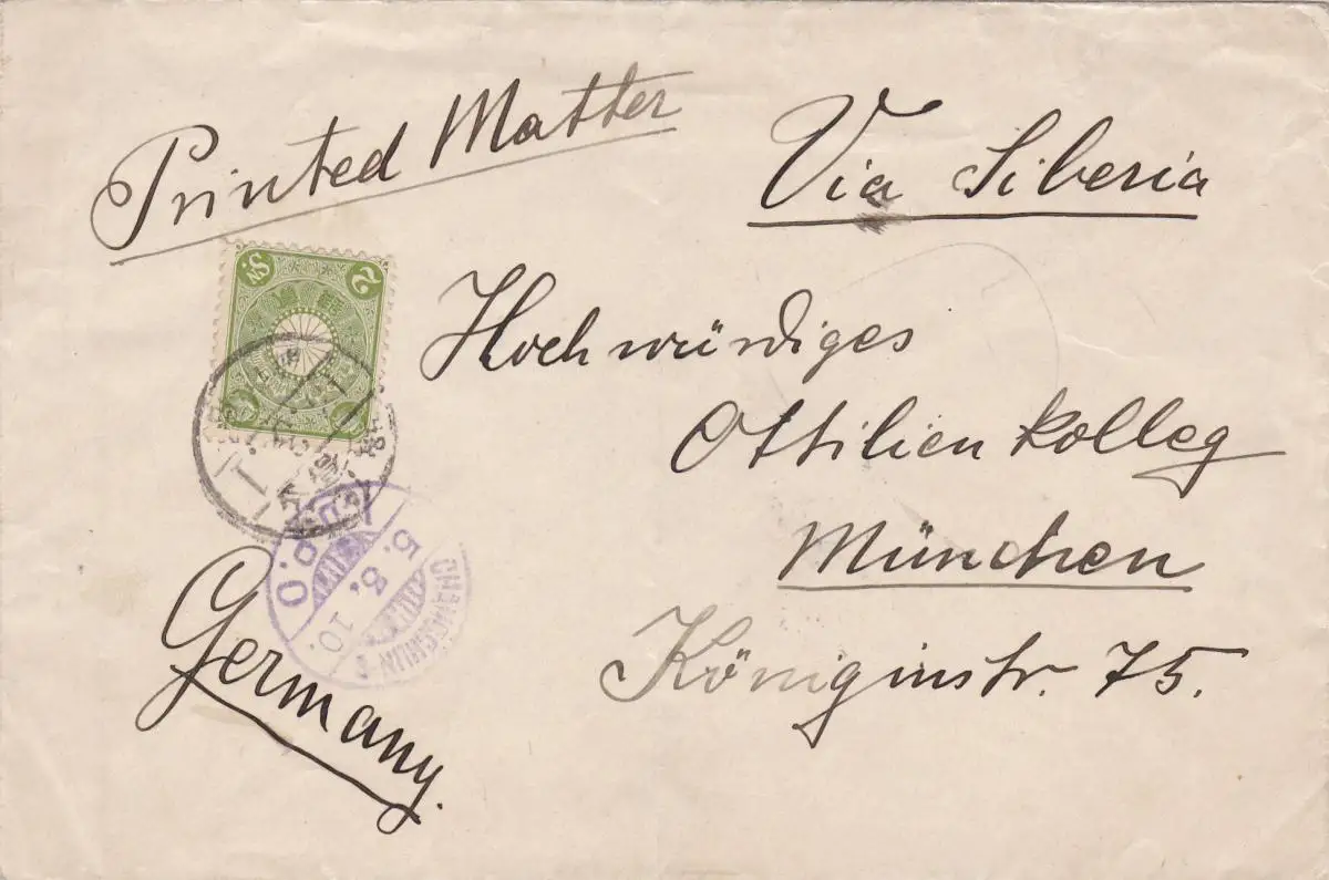 1910: Corée/Chanckhin via Sibiria as printed matter to Germany/Munich