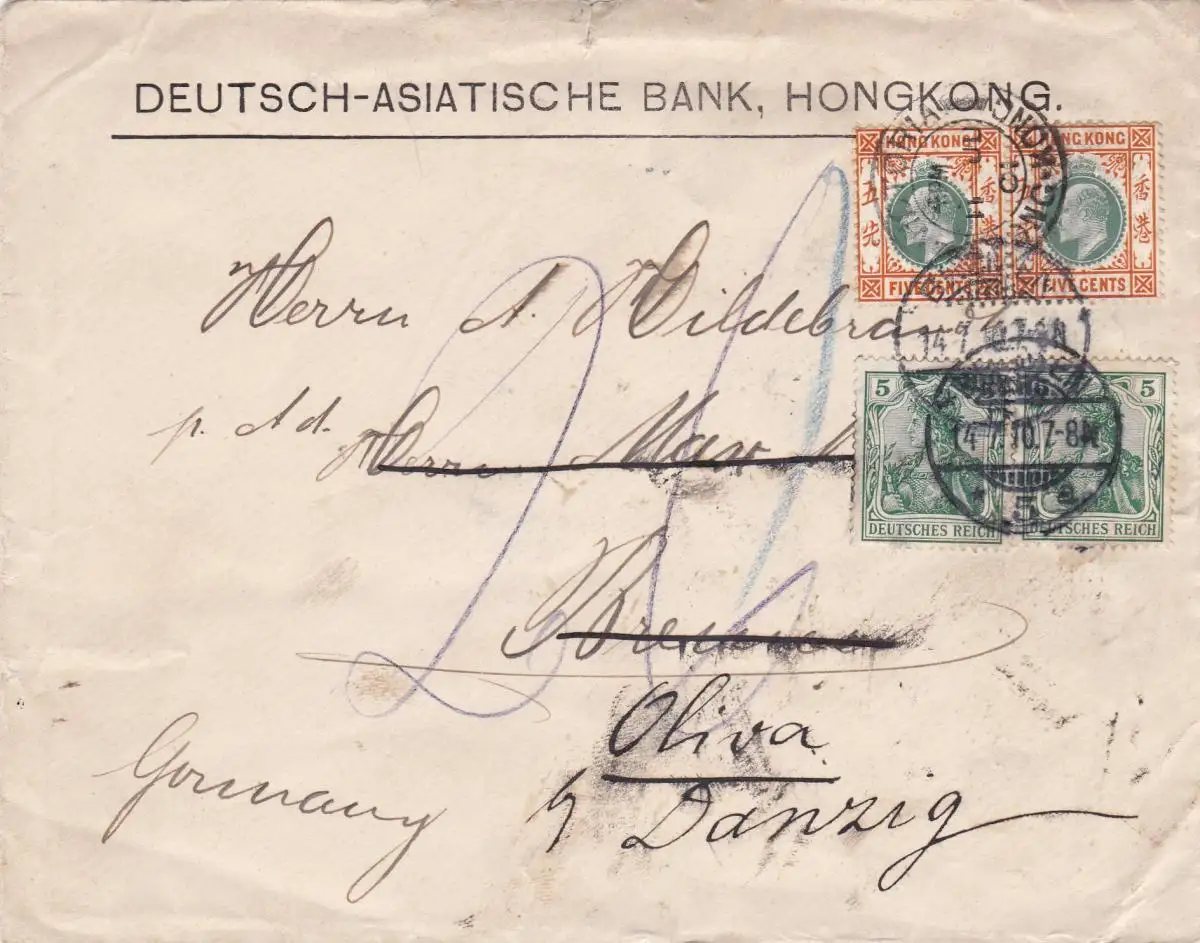 1910: Deutsche-Asiatique Bank Hong Kong to Germany/Danzig