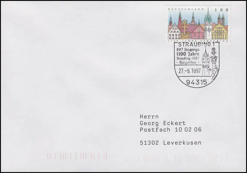 1910 Straubing, EF Brief SSt Straubing Civil Fest 17.6.1997