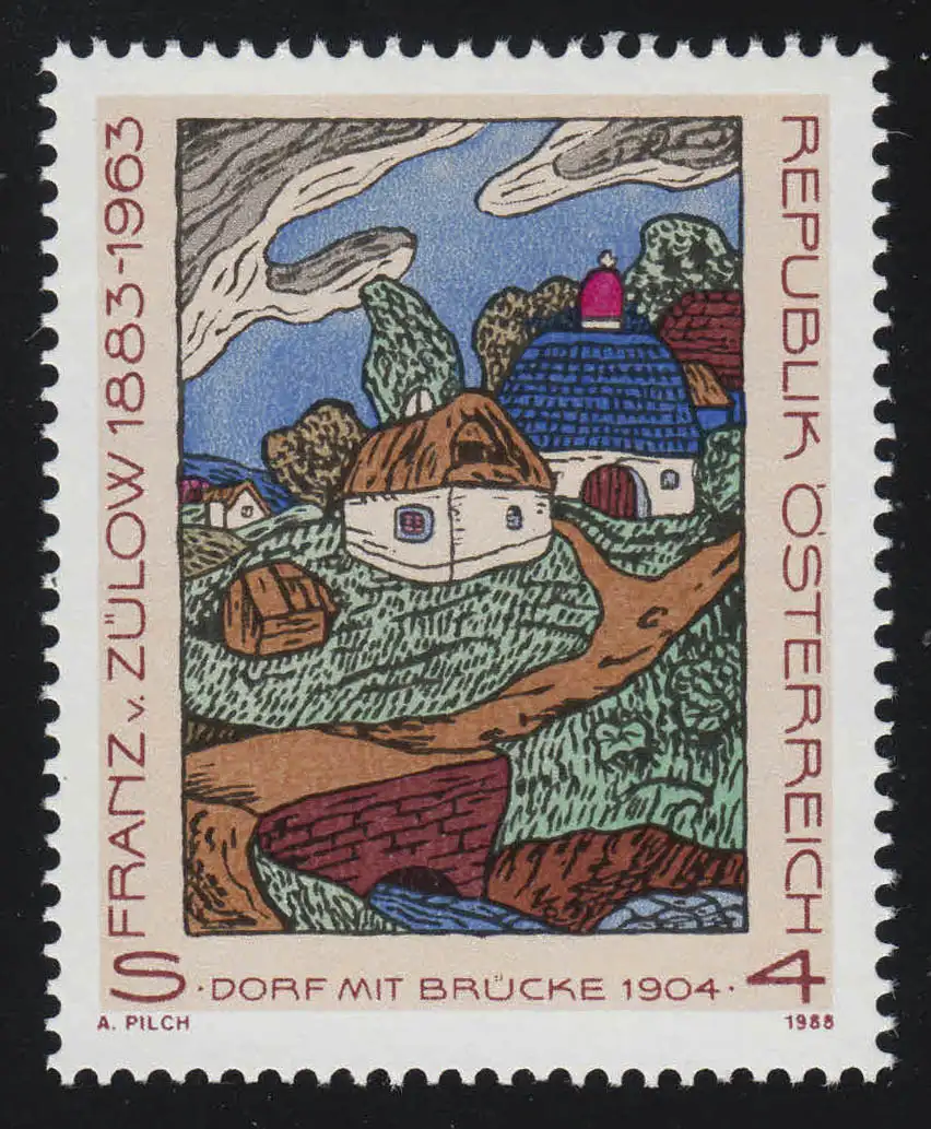 1912 25ème anniversaire de la mort, Franz von Zülow, village avec pont peinture Zulov, 4 p **
